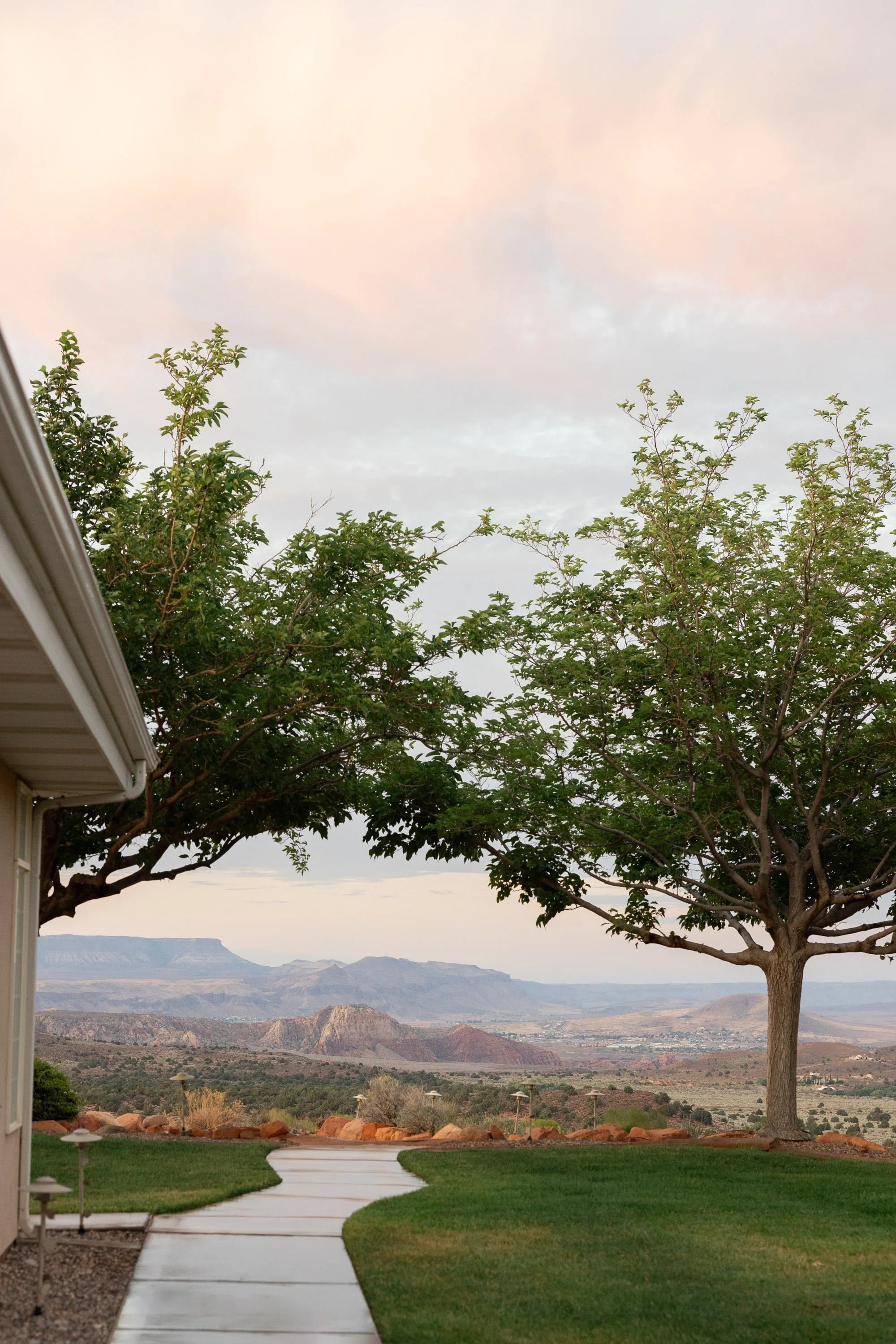 Three beautiful homes situated on a peaceful, secluded hill with a stunning 180 degree view of Zion National Park. Our homes sleep 50 people total and welcome up to 150 for your ceremony and reception. 🤍