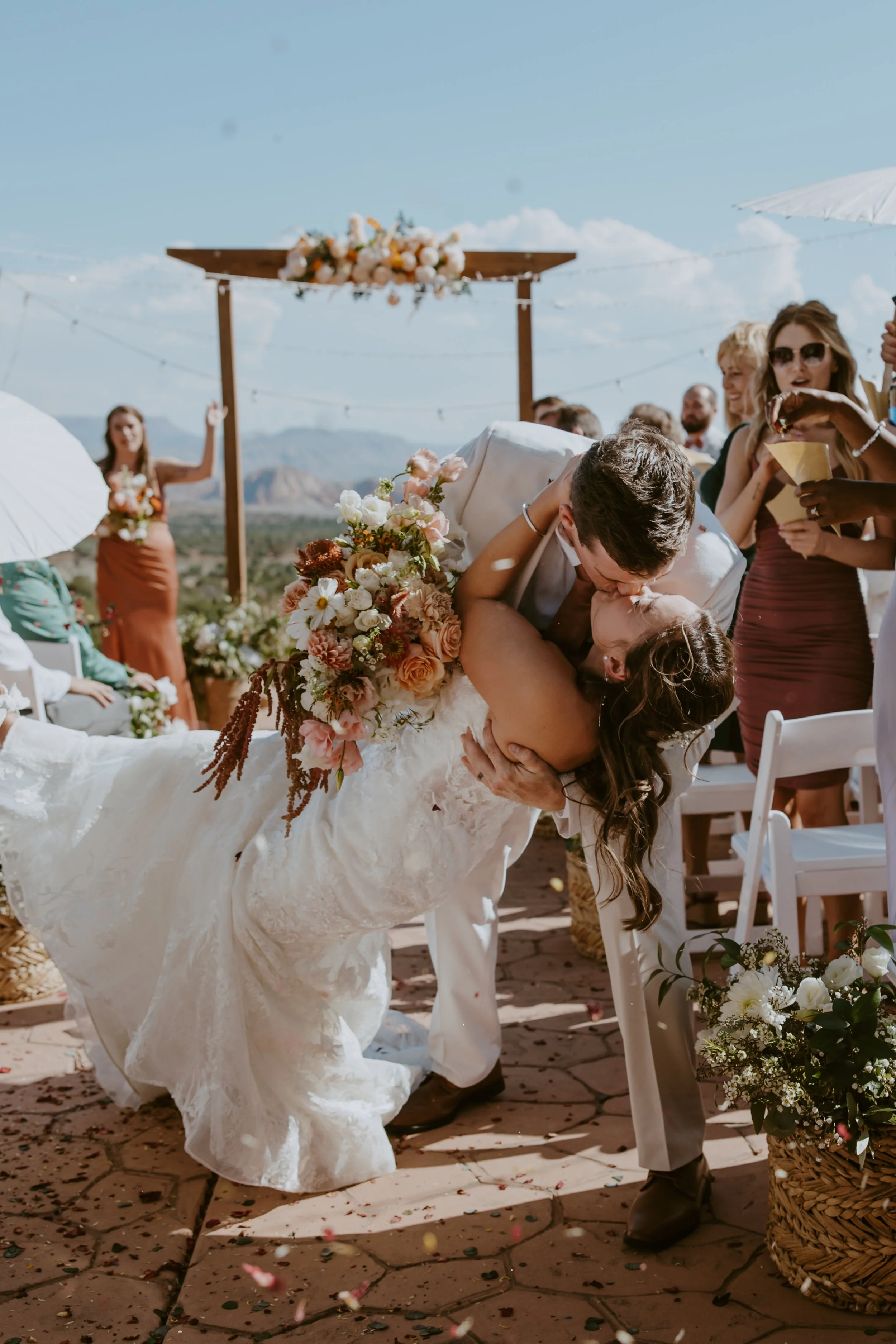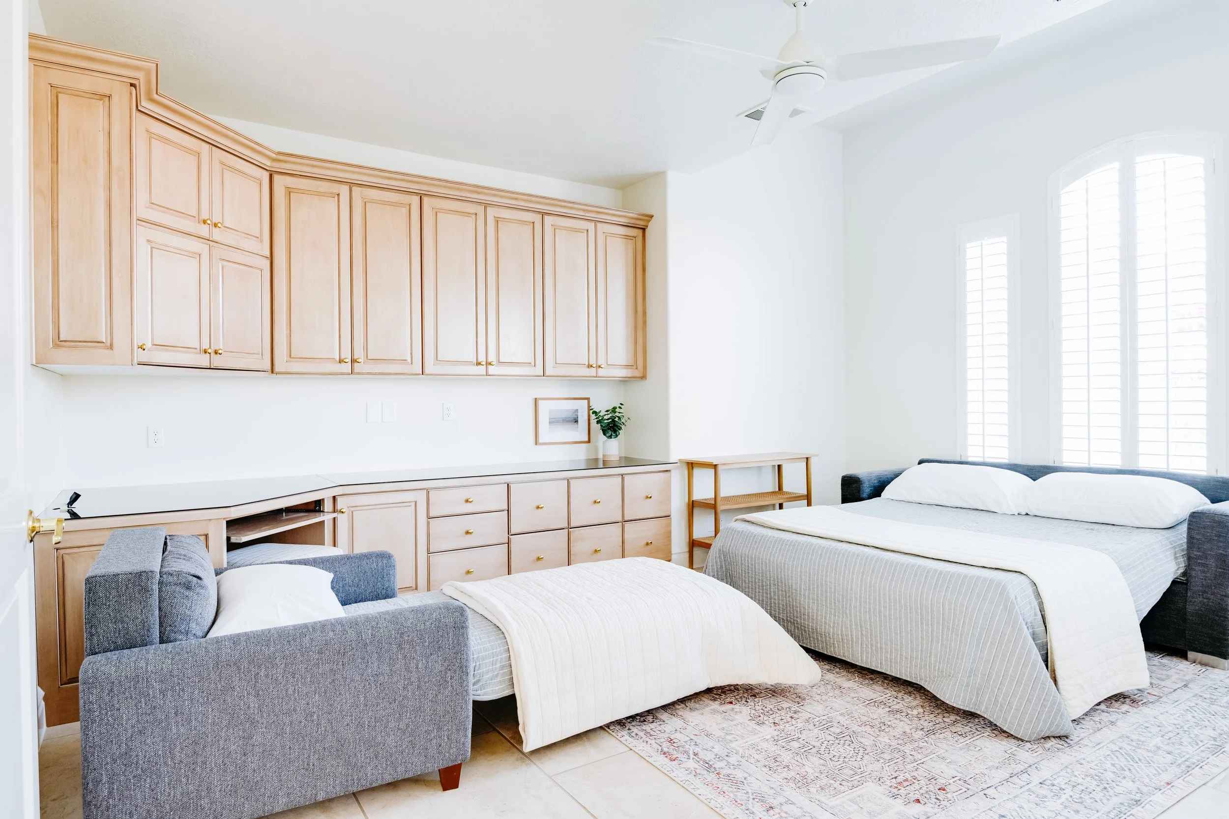 Our Zion’s View home comes with 4 bedrooms, 3 bathrooms, 2 dining areas, a full kitchen and laundry area, and ample back yard space for guests and wedding equipment necessities. This home sleeps up to 17 people.